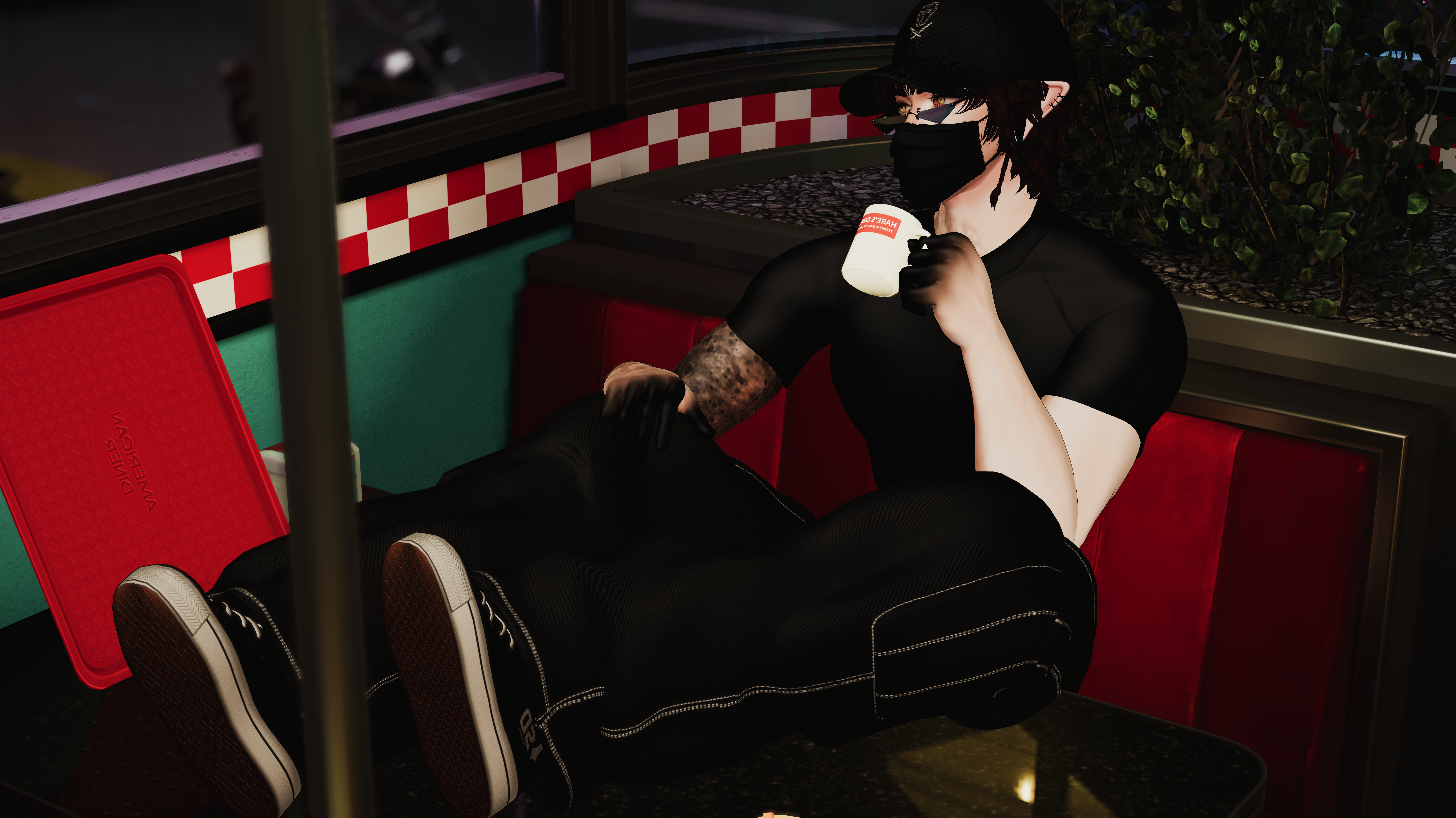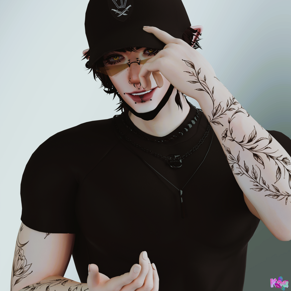 Body: Head (Heavy sculpt by me), Body (Heavy sculpt by me), Hair 1, Hair 2, Lashes, Ears, Tattoo 1 (Commissioned by Soleia3D), Tattoo 2 (Commissioned by Reece)